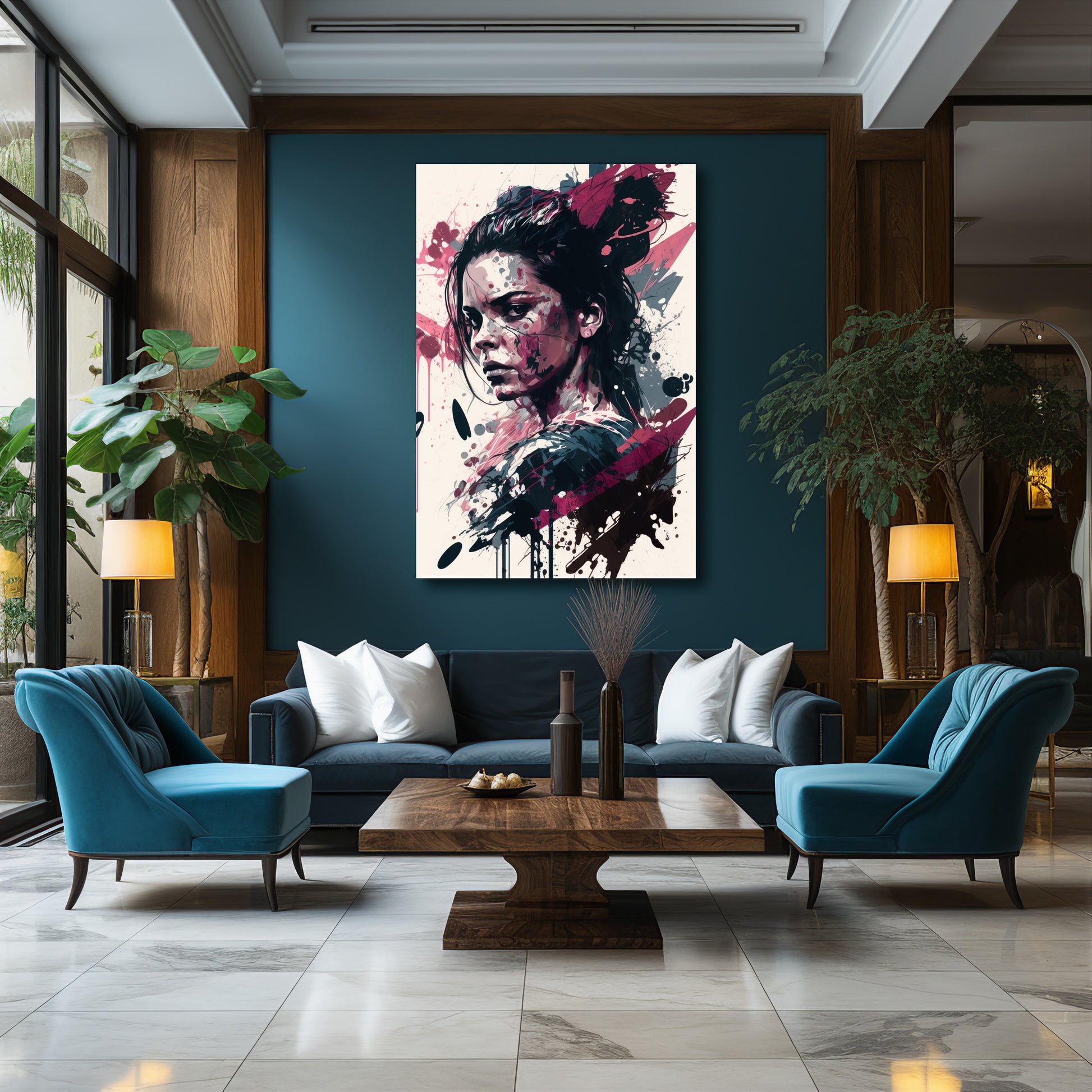 Châssis aluminium ou accroches pliables selon le format : châssis invisible avec écartement du mur de 2 cm, pour un effet suspendu.