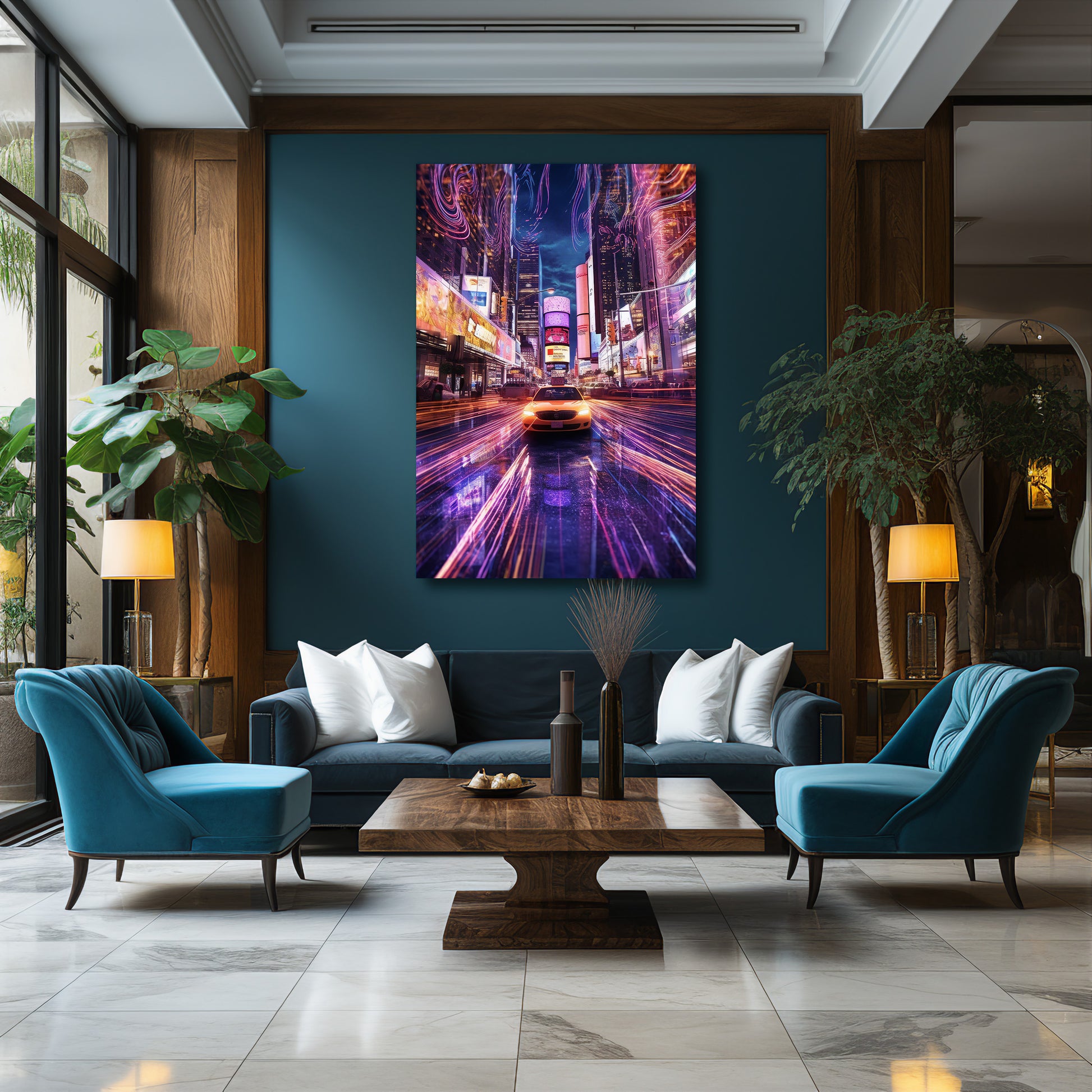Châssis aluminium ou accroches pliables selon le format : châssis invisible avec écartement du mur de 2 cm, pour un effet suspendu.