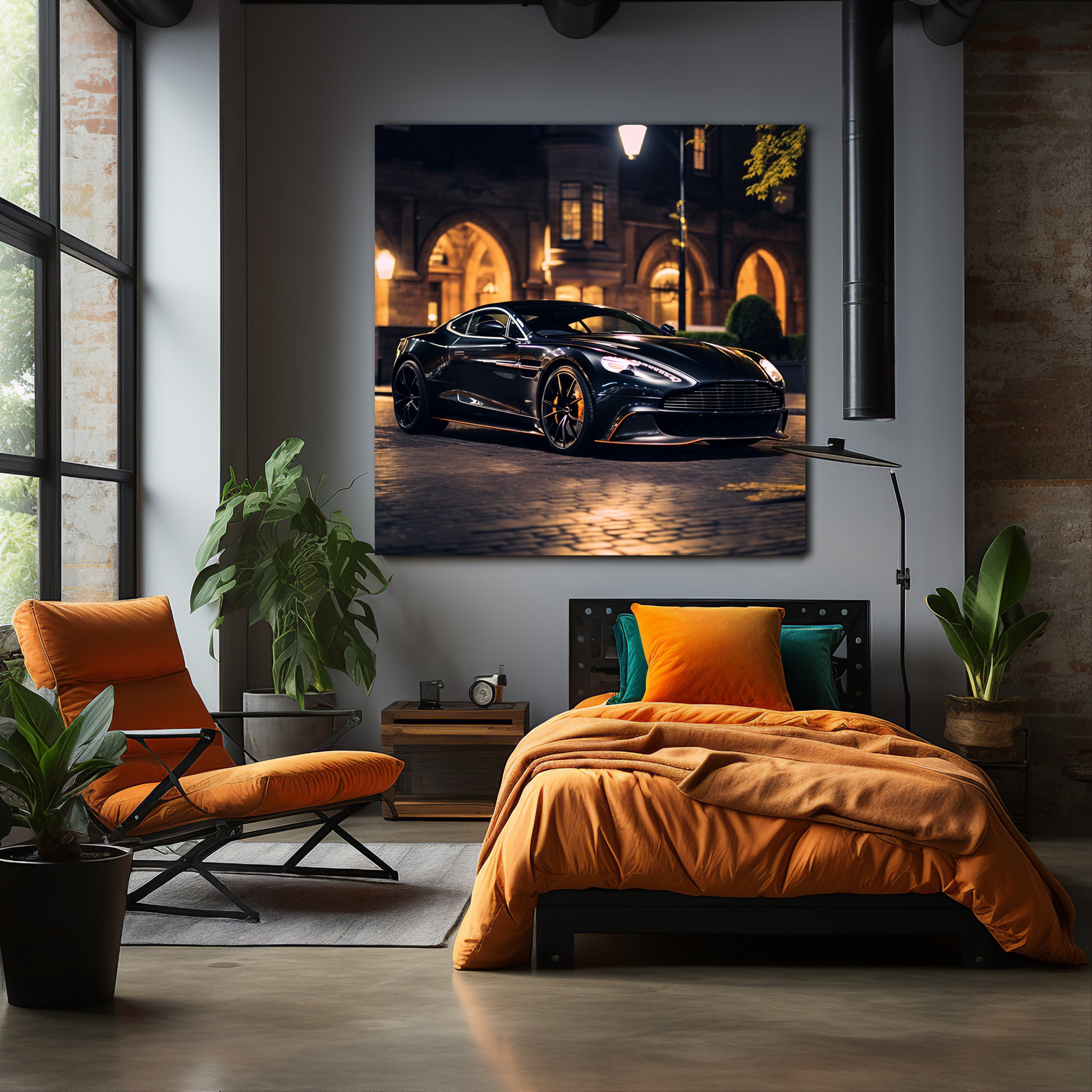 Châssis aluminium ou accroches pliables selon le format : châssis invisible avec écartement du mur de 2 cm, pour un effet suspendu.