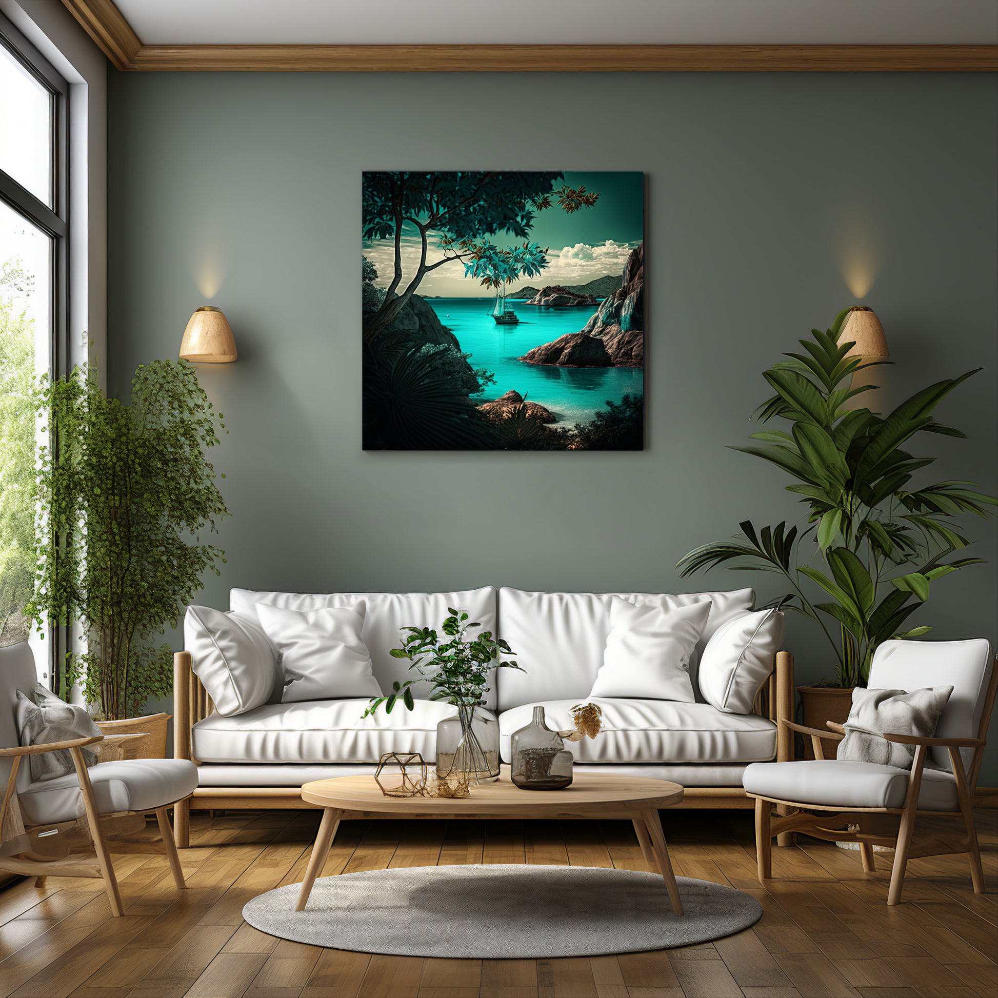 Châssis aluminium ou accroches pliables selon le format : châssis invisible avec écartement du mur de 2 cm, pour un effet suspendu.